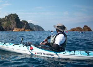 香住海岸の西側、三田浜にある「かすみジオクラブ」では、カヤックとサップの体験ができます。三田浜から出艇、山陰海岸ジオ…